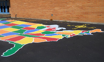 Is your playground area boring or faded? We have a wide range of playground stencils including: four square, hopscotch, maps, clocks, and a wide range of kid themed appliqués. We also do basketball and tennis courts, running tracks and athletic fields.